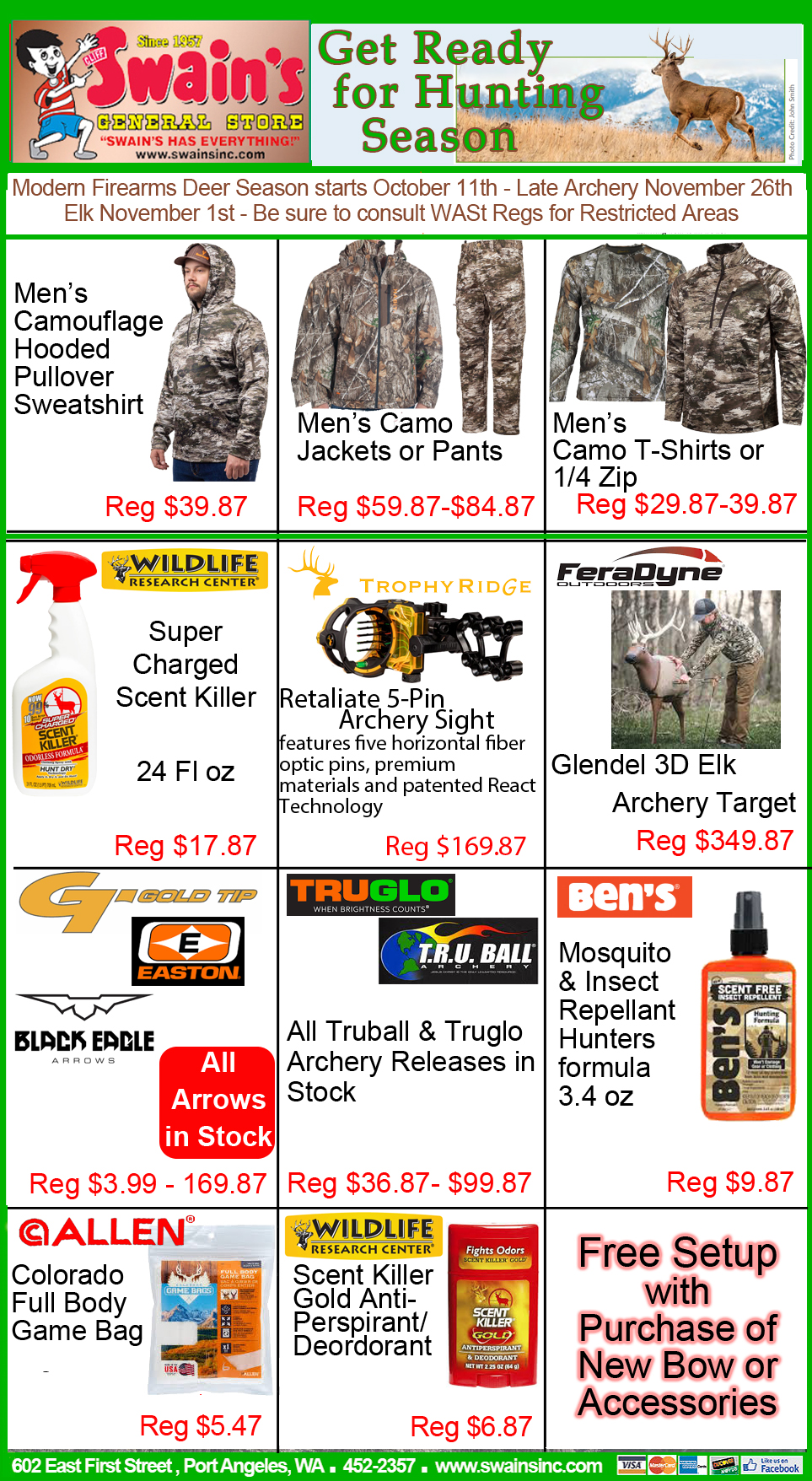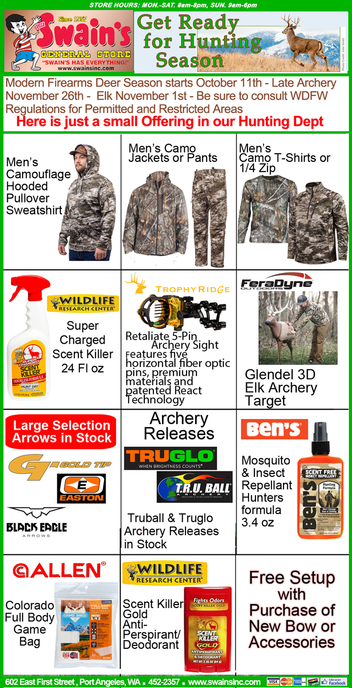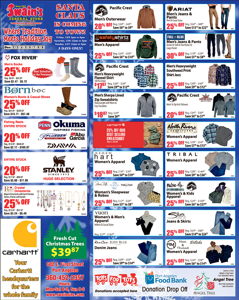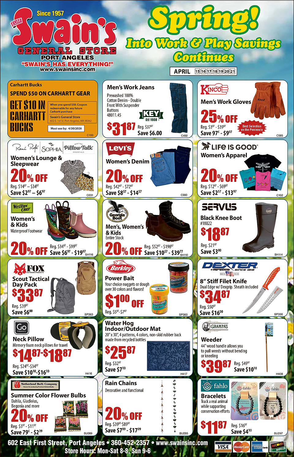 We're located at 602 E. First St Port Angeles, WA 98362 (360) 452-2357 e-mail us @ swains.info@olypen.com