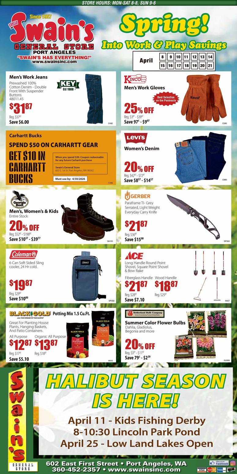 We're located at 602 E. First St Port Angeles, WA 98362 (360) 452-2357 e-mail us @ info@swainsinc.com