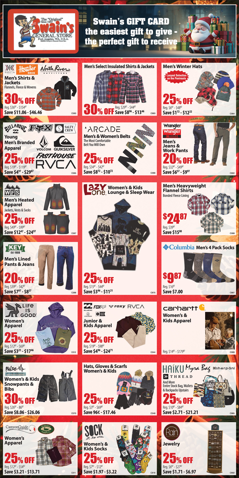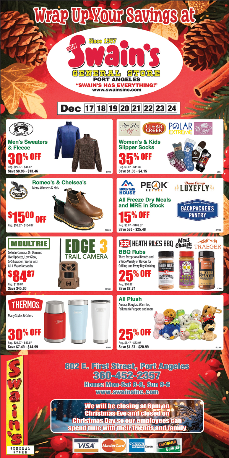 We're located at 602 E. First St Port Angeles, WA 98362 (360) 452-2357 e-mail us @ swains.info@olypen.com