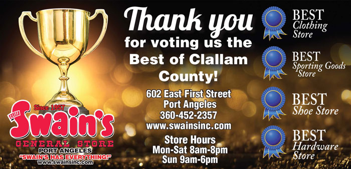 We're located at 602 E. First St Port Angeles, WA 98362 (360) 452-2357 e-mail us @ swains.info@olypen.com